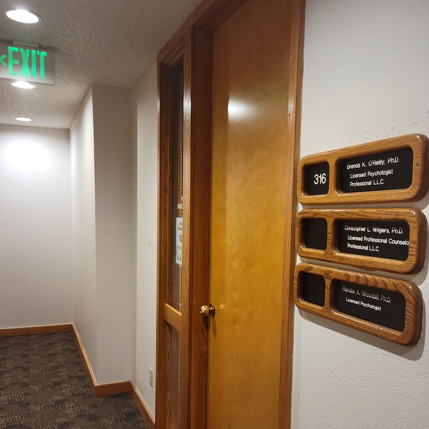 The building will be in the back corner of the office park (furthest south, facing north). When you arrive, you’re welcome to park in a ‘visitor’ spot at the front. Upon entering you’ll need to take the elevator up to the 3rd floor, and then turn left. Suite 316 will be at the end of the hall.